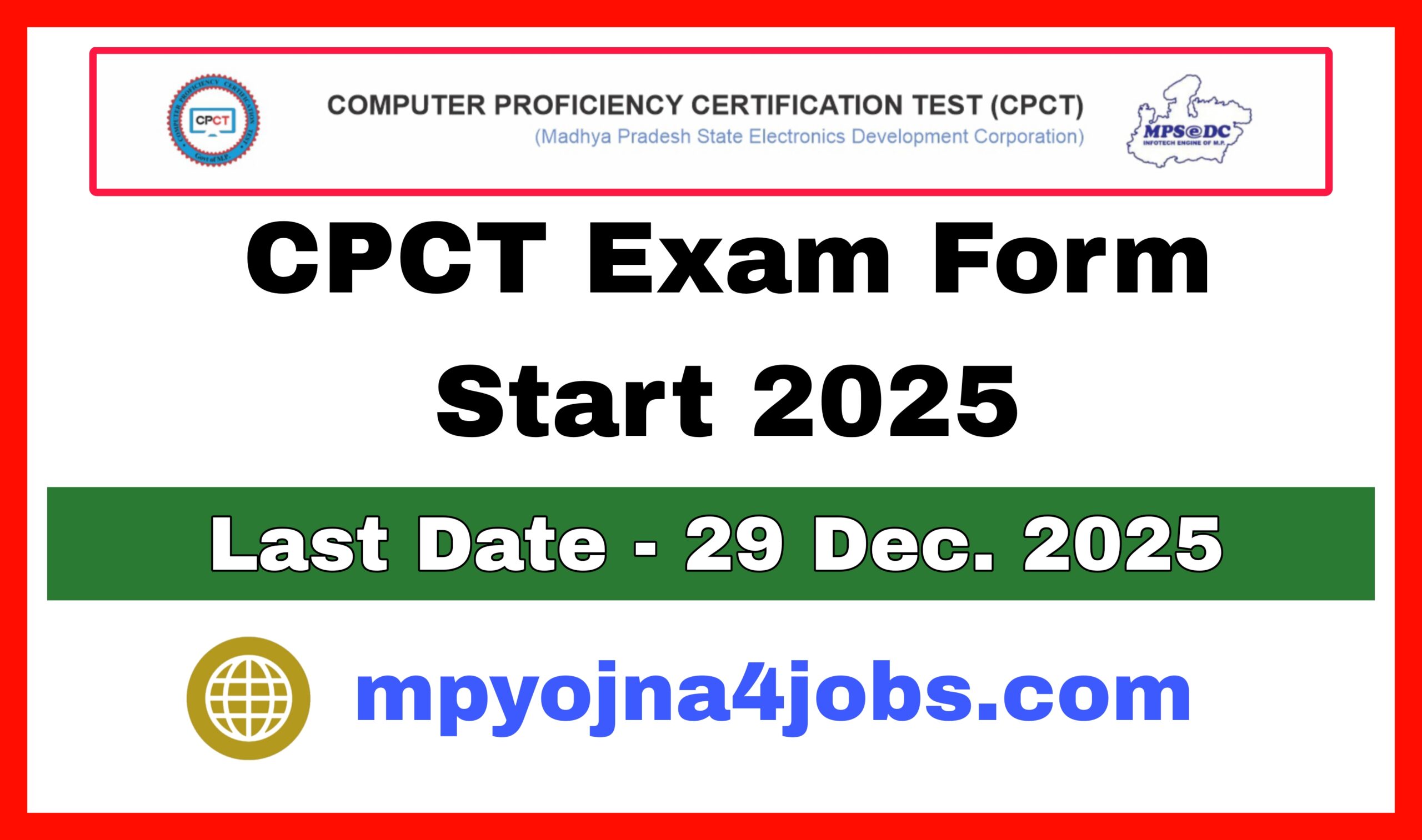 CPCT Exam Form Start 2025 – मध्य प्रदेश में सरकारी नौकरियों के लिए CPCT (Computer Proficiency Certification Test) एक बहुत ही महत्वपूर्ण परीक्षा है। यह परीक्षा कंप्यूटर और टाइपिंग कौशल को प्रमाणित करती है, जो आज के समय में लगभग हर सरकारी पद के लिए आवश्यक हो चुका है। हाल ही में आने वाली ग्राम पंचायत सचिव भर्ती के लिए CPCT परीक्षा अनिवार्य कर दी है जो भी अभ्यर्थी इस भर्ती परीक्षा में आवेदन करना चाहता है वह पहले सीपीसीटी परीक्षा उत्तीर्ण होना चाहिए ।