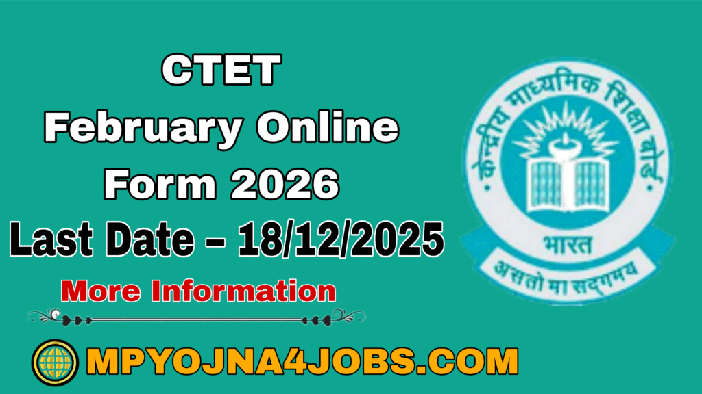 CTET February Online Form 2026 – केंद्रीय माध्यमिक शिक्षा बोर्ड द्वारा केंद्रीय शिक्षक पात्रता परीक्षा 2026 के लिए आवेदन एवं नोटिफिकेशन जारी कर दिया है जिसमें पूरे भारत में CTET की परिक्षा 132 शहरों में आयोजित की जाएगी योग्य एवं इच्छुक उम्मीदवार अपना आवेदन ऑनलाइन माध्यम से दिनांक 27 नवंबर से आवेदन की अंतिम तिथि 18 दिसंबर 2025 तक कर सकता है आवेदन से संबंधित समस्ता जानकारी नीचे दी गई है ।