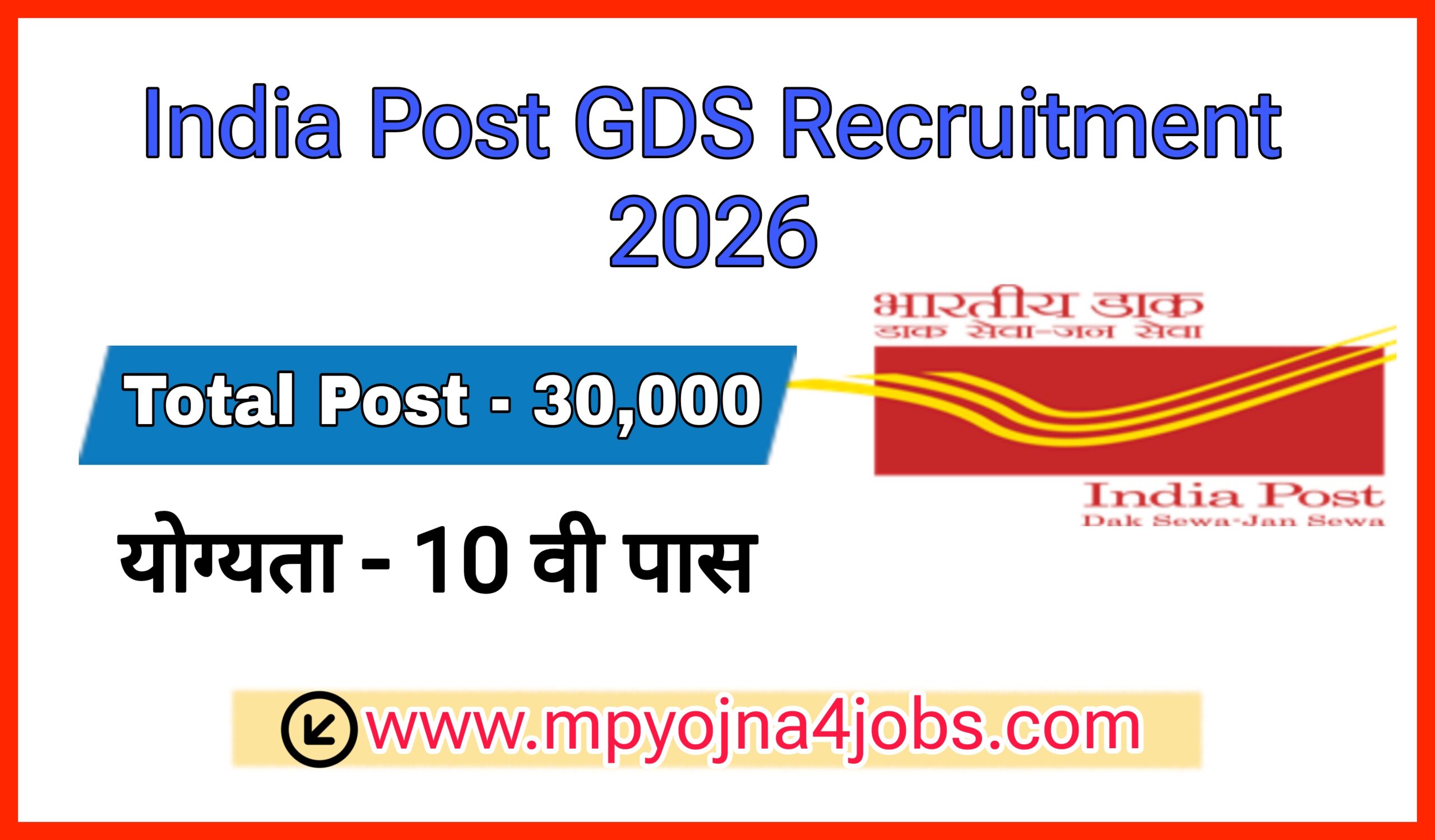 ग्रामीण डाक सेवक 30,000 पदों पर बंपर भर्ती , India Post GDS Recruitment 2026
