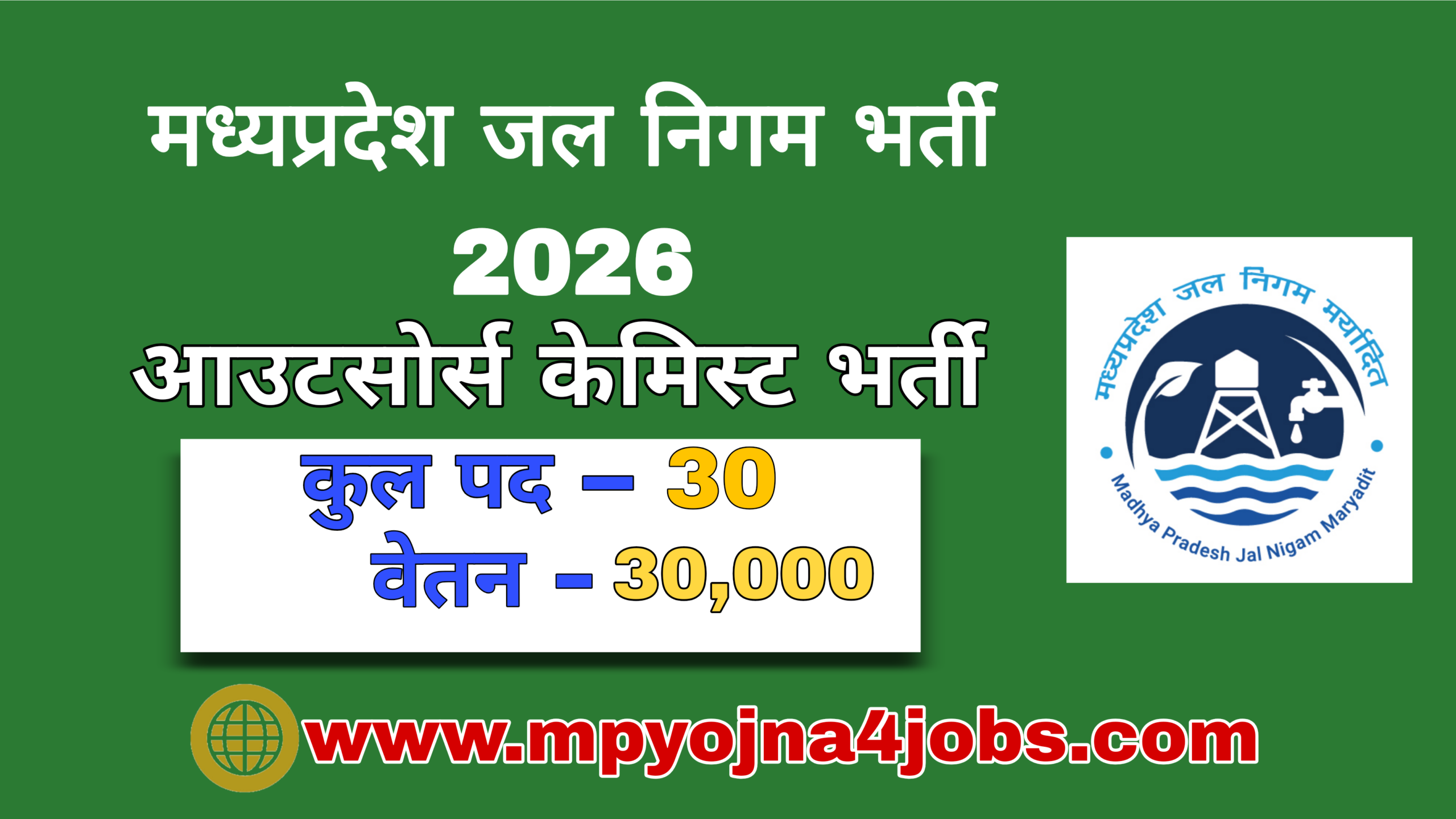 Madhyapradesh Jal Nigam Vacancy 2026 – मध्यप्रदेश जल निगम द्वारा विभिन्न पदों पर आउटसोर्स भर्ती के लिए नोटिफिकेशन जारी कर दिया है जिसमें योग्य एवं इच्छुक उम्मीदवार अपना आवेदन ऑनलाइन माध्यम से नोटिफिकेशन जारी होने की तिथि 8 से 15 दिन के अंदर कर सकते है आवेदन से संबंधित अधिक जानकारी नीचे दी गई है ।