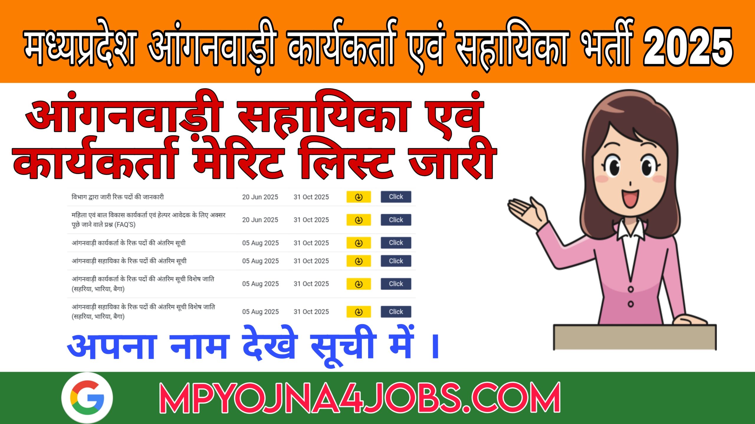 MP Anganwadi Sahayika Merit List Out , मध्यप्रदेश आंगनवाड़ी सहायिका एवं कार्यकर्ता मेरिट लिस्ट जारी