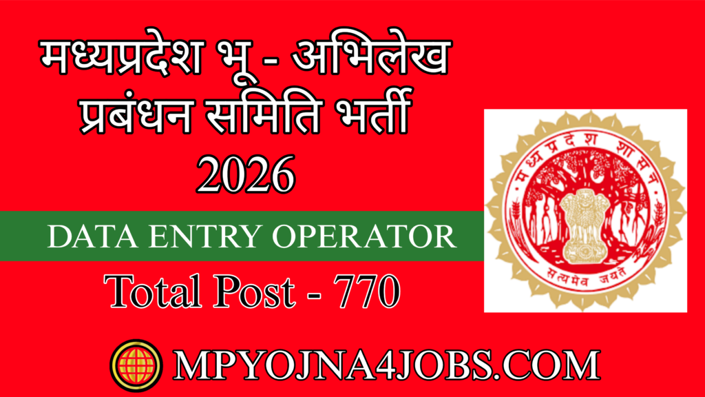 MP Bhulekh Recruitment 2026 – मध्यप्रदेश भू –अभिलेख प्रबंधन समिति द्वारा डाटा एंट्री ऑपरेटर के 770 पदों पर भर्ती के लिए आवेदन एवं नोटिफिकेशन जारी कर दिया है जिसमें योग्य एवं इच्छुक उम्मीदवार अपना आवेदन ऑनलाइन माध्यम से आवेदन की प्रारंभ तिथि 23 फरवरी से आवेदन की अंतिम तिथि 23 मार्च 2026 तक कर सकते है आवेदन से संबंधित अधिक जानकारी moyojna4jobs.com पर दी गईभाई ।