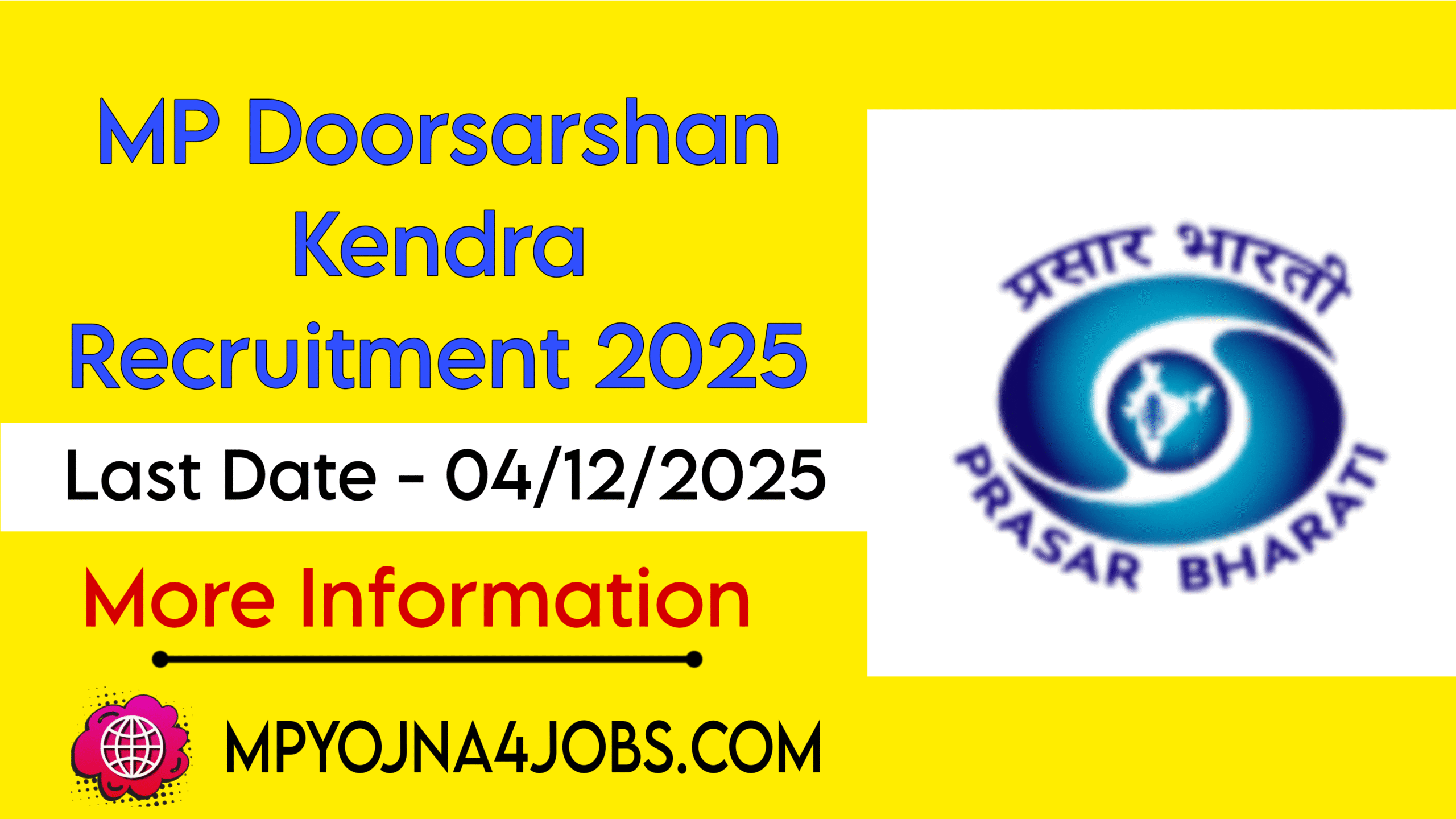 - मध्यप्रदेश दूरदर्शन केंद्र भर्ती के लिए आवेदन दिनांक 04 नवंबर 2025 से ऑफलाइन माध्यम से भरे जा रहे है ।
