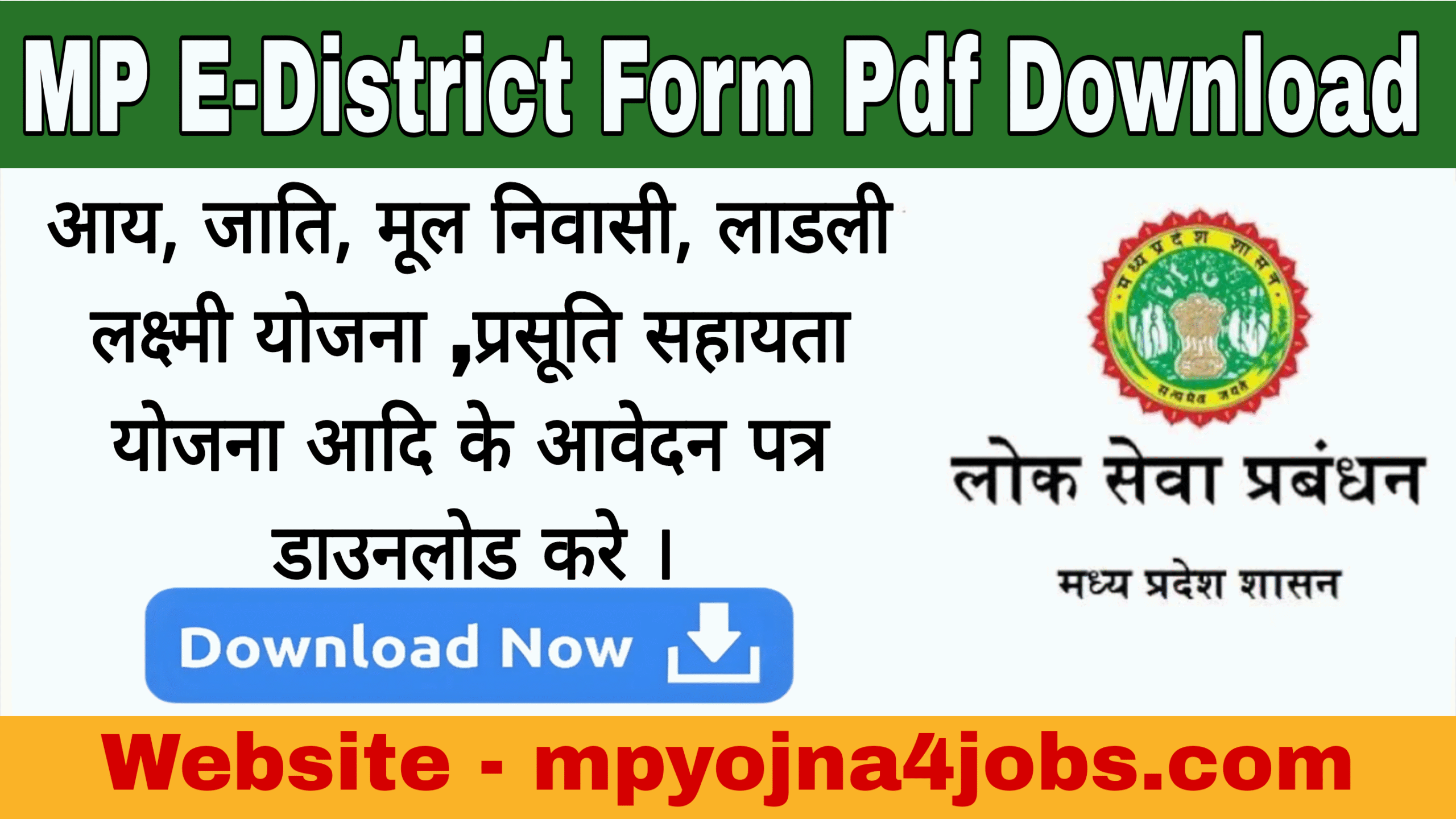 MP E-District All Form PDF Download – मध्यप्रदेश लोक सेवा केंद्र ( MP E-District ) अपने जिला एवं तहसील कार्यालय या MP ऑनलाइन पर हम आपने दस्तावेज बनबाने जाते है जैसे – आय प्रमाण पत्र, जाती प्रमाण पत्र , मूल निवासी , लाडली लक्ष्मी योजना आदि फॉर्म की हमे जरूरत पड़ती जिसे भर कर हम कर्यालय में जमा करते है | अगर आप CSC या MP Online संचालक है तो ये आवेदन प्रपत्र आपके पास होना बहुत जरूरी है | आवेदन प्रपत्र डाउनलोड करने की लिंक नीचे दी गयी है ! लिंक पर क्लिक कर आप आवेदन फॉर्म डाउनलोड कर सकते है |