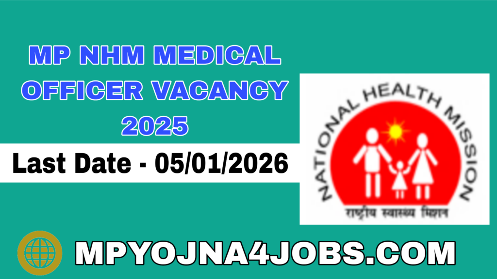 MP NHM Medical Officer Recruitment 2025 – मध्यप्रदेश राष्ट्रीय स्वस्थ मिशन विभाग द्वारा मेडिकल अधिकारी के 328 पदों पर भर्ती के लिए आवेदन एवं नोटिफिकेशन जारी कर दिया है । जिसके आवेदन ऑनलाइन माध्यम से किए जा रहे है । योग्य एवं इच्छुक।उम्मीदवार अपना आवेदन ऑनलाइन माध्यम से दिनांक 16 दिसंबर से आवेदन की अंतिम तिथि 05 जनवरी 2026 तक कर सकता हैं आवेदन से संबंधित अधिक जानकारी mpyojna4jobs.com पर दी गई है ।