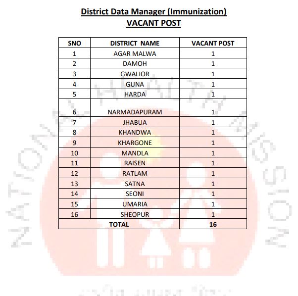 ✓ मध्यप्रदेश राष्ट्रीय स्वास्थ मिशन भर्ती द्वारा जिला डाटा मैनेजर के पदों पर ऑनलाइन आवेदन 02 सितंबर 2025 से भरे जा रहें है।