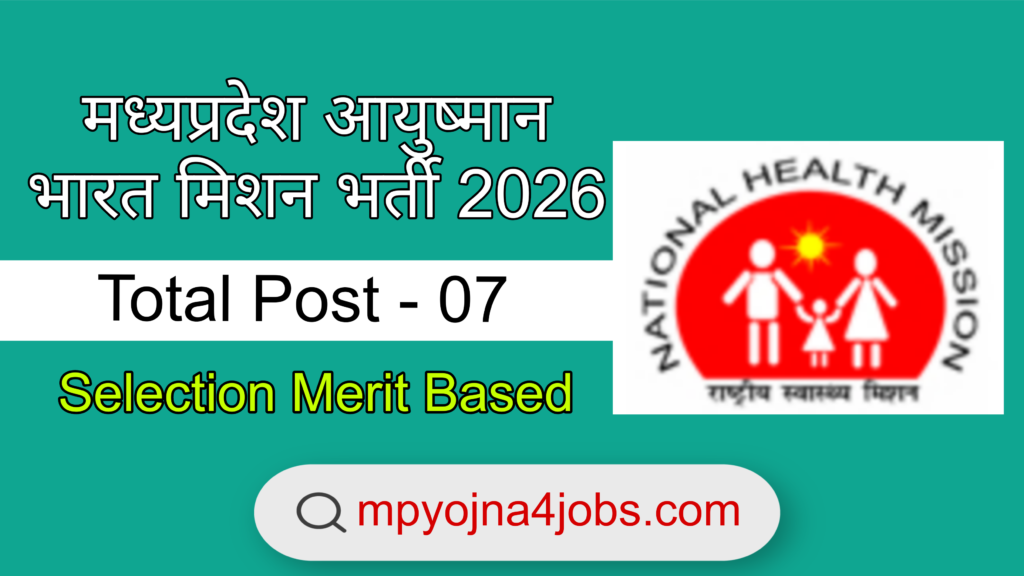 - राष्ट्रीय स्वास्थ्य मिशन मध्यप्रदेश के अंतर्गत आयुष्मान भारत मिशन भर्ती के आवेदन ऑनलाइन माध्यम से आवेदन की प्रारंभ तिथि 12 जनवरी 2026 से भरे जाने लगे है ।