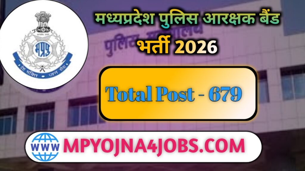 MP Police Constable Band Vacancy 2026- मध्यप्रदेश पुलिस विभाग द्वारा पुलिस आरक्षक बैंड के 679 पदों पर भर्ती के लिए नोटिफिकेशन जारी कर दिया है जिसमें सिर्फ पुरुष उम्मीदवार ही आवेदन कर सकता है , योग्य एवं इच्छुक उम्मीदवार अपना आवेदन ऑनलाइन माध्यम से 05 अप्रैल 2026 से आवेदन की अंतिम तिथि 19 अप्रैल 2026 तक कर सकते है । आवेदन से संबंधित अधिक जानकारी नीचे दी गई है ।