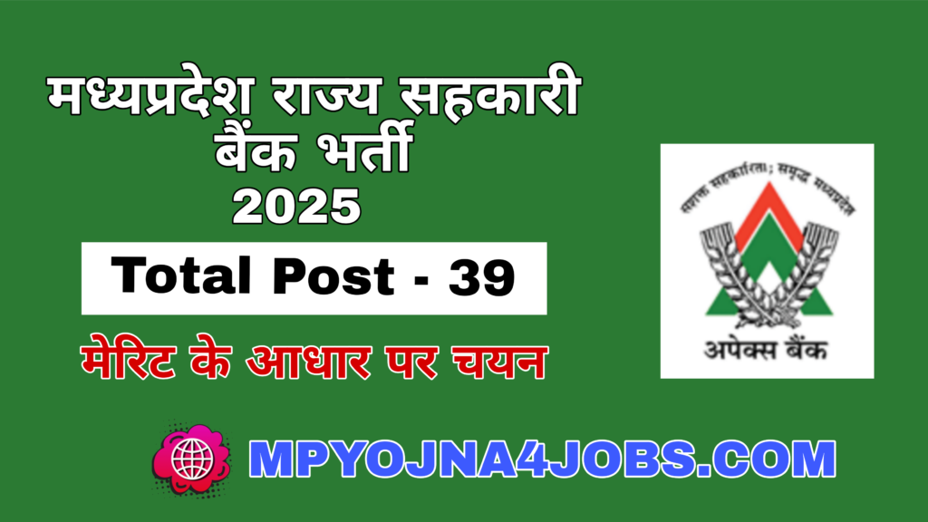 MP Rajya Sahkari Bank Vacancy 2025 :- मध्यप्रदेश जिला सहकारी बैंक द्वारा विभिन्न जिलों में 39 पदों पर भर्ती के लिए आवेदन एवं नोटिफिकेशन जारी कर दिया है जिसमें योग्य एवं इच्छुक उम्मीदवार अपना आवेदन ऑनलाइन माध्यम से कर सकते है । अभ्यर्थी का चयन योग्यता के आधार पर किया जाएगा आवेदन की प्रारंभ तिथि 10 दिसंबर 2025 से आवेदन की अंतिम तिथि 24 दिसंबर 2025 तक कर सकते है । आवेदन से संबंधित अधिक जानकारी नीचे दी गई है ।