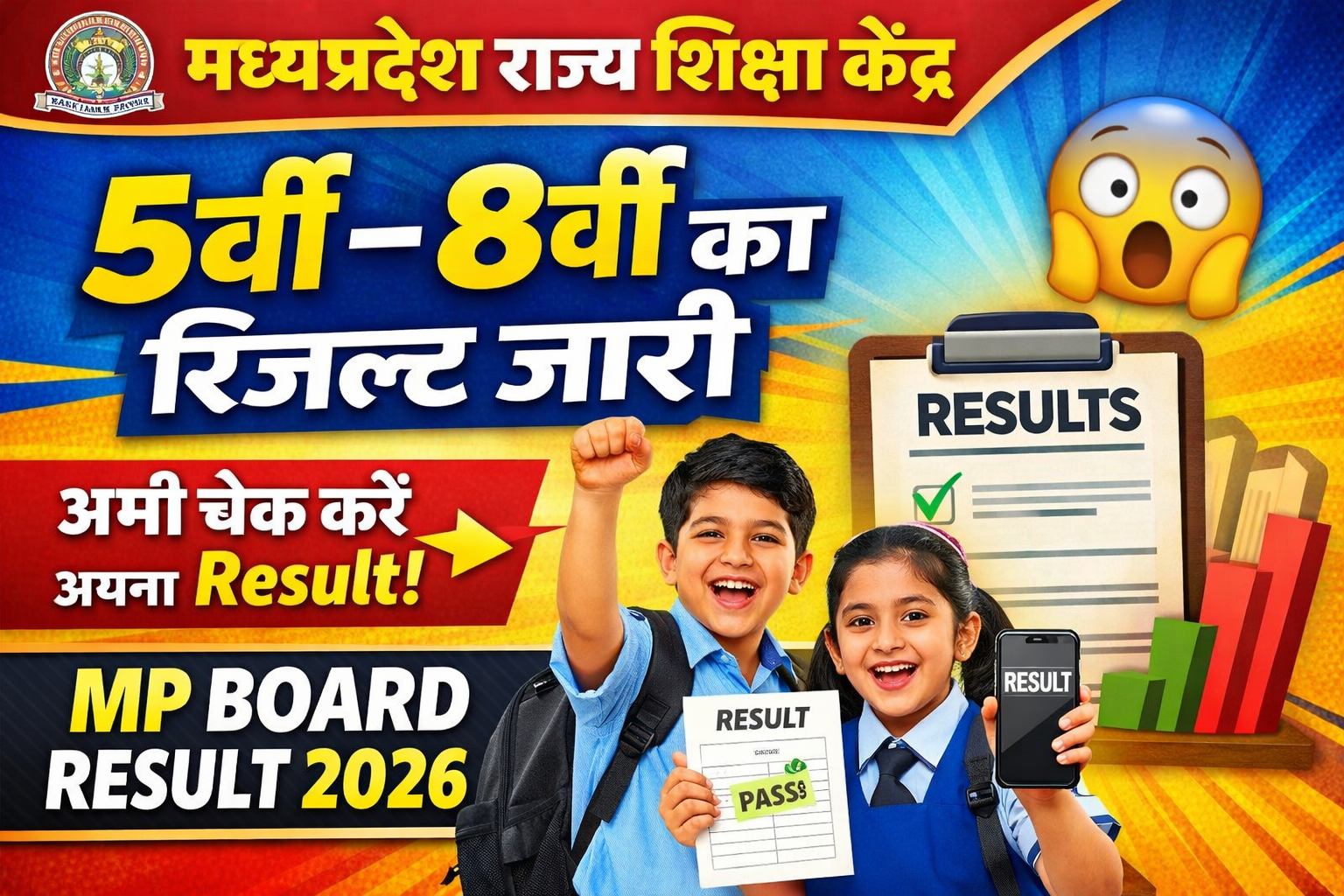 MP RSK 5th & 8th Class Result Out 2026 – मध्यप्रदेश राज्य शिक्षा केंद्र द्वारा फरवरी माह में आयोजित कक्षा 5 वी एवं कक्षा 8 वी की परीक्षा संपन्न हुई थी । जिनका परीक्षा परिणाम 25 मार्च को दोपहर 11:30 जारी किया जाएगा सभी विद्यार्थी अपना रिजल्ट नीचे दी गई लिंक के माध्यम से देख सकते है ।
