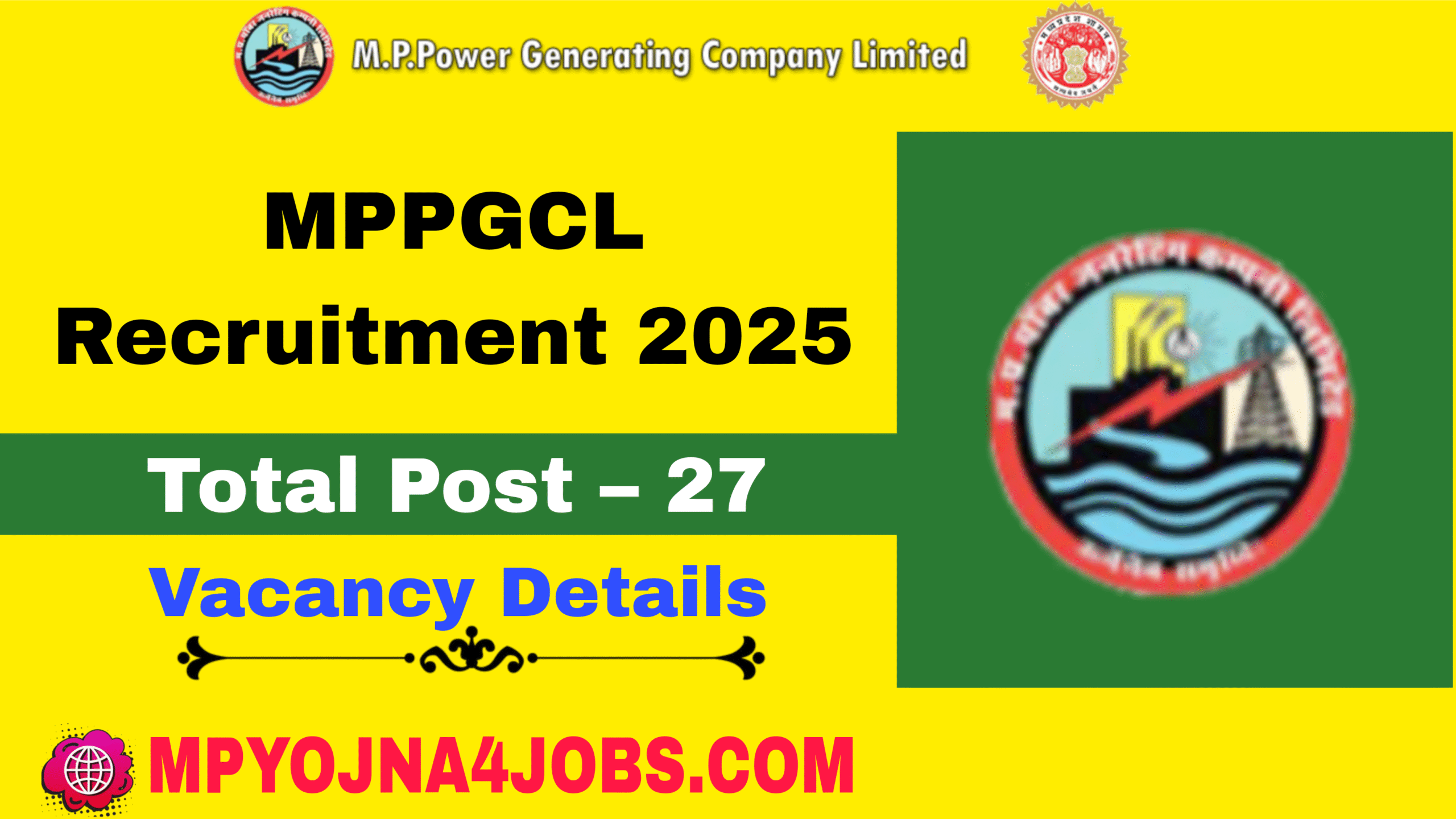MPPGCL Recruitment 2025 :- मध्य प्रदेश पावर जनरल कंपनी लिमिटेड द्वारा शासकीय / अशासकीय मान्यता प्राप्त इंजीनियरिंग/ मध्यप्रदेश राज्य के पॉलिटेक्निक कॉलेजों से उत्तीर्ण अभ्यर्थियों से विभिन्न शाखाओं में एक वर्ष के अप्रेंटिस प्रशिक्षण के लिए आवेदन आमंत्रित किए जा रहे है । जिसमें योग्य एवं इच्छुक उम्मीदवार अपना आवेदन स्वयं या डाक द्वारा कार्यालय पते पर अंतिम तिथि से पहले भेज दे आवेदन से संबंधित अधिक जानकारी नीचे दी गई है ।