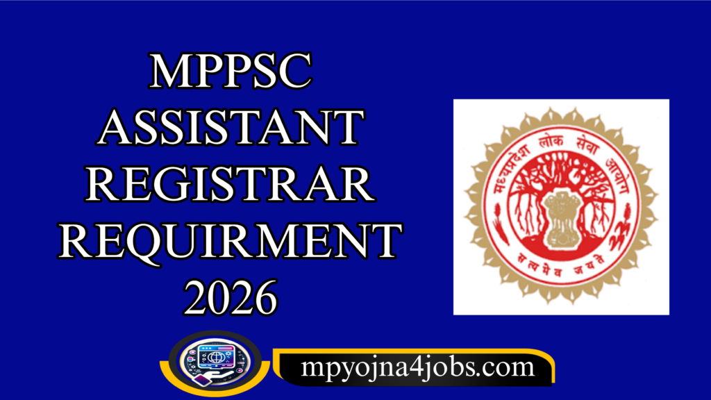 MPPSC Assistant Registar Requirement 2026 – मध्यप्रदेश लोक सेवा आयोग द्वारा सहायक कुलपति के पदों पर भर्ती के लिए अधिसूचना जारी कर दी गई है।जिसके आवेदन ऑनलाइन माध्यम से आवेदन की प्रारंभ तिथि 06 फरवरी 2026 से शुरू हो चुके है । योग्य एवं इच्छुक उम्मीदवार अपना आवेदन , आवेदन की अंतिम तिथि 05 मार्च 2026 तक कर सकता है । आवेदन से संबंधित अधिक जानकारी नीचे दी गई है ।