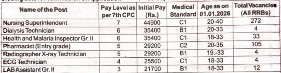 - रेलवे (RRB) पैरामेडिकल भर्ती के लिए ऑनलाइन आवेदन प्रारंभ 09 अगस्त 2025 से भरे जाएंगे ।