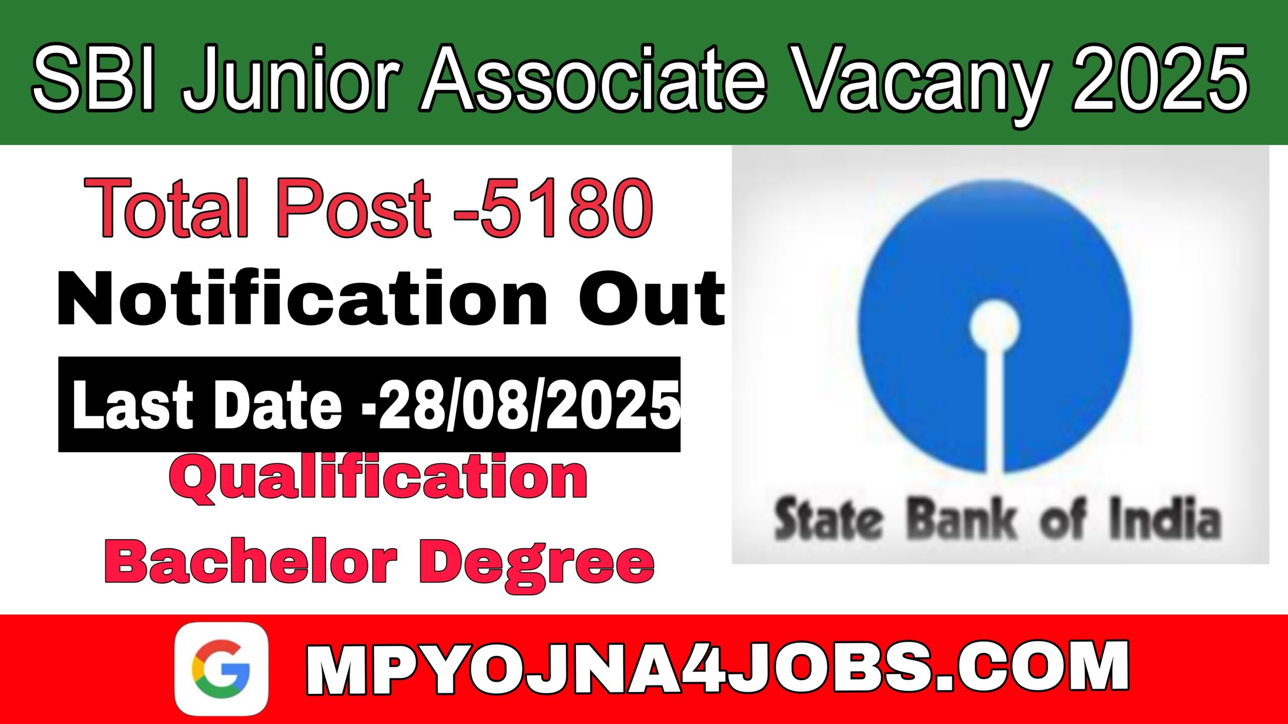 SBI Junior Associate Clerk Online Form 2025 – State Bank of India has issued application and notification for recruitment on 5180 posts of junior organization in which eligible and interested candidates should ensure their application before the last date 26th August 2025. Information related to application is given below.